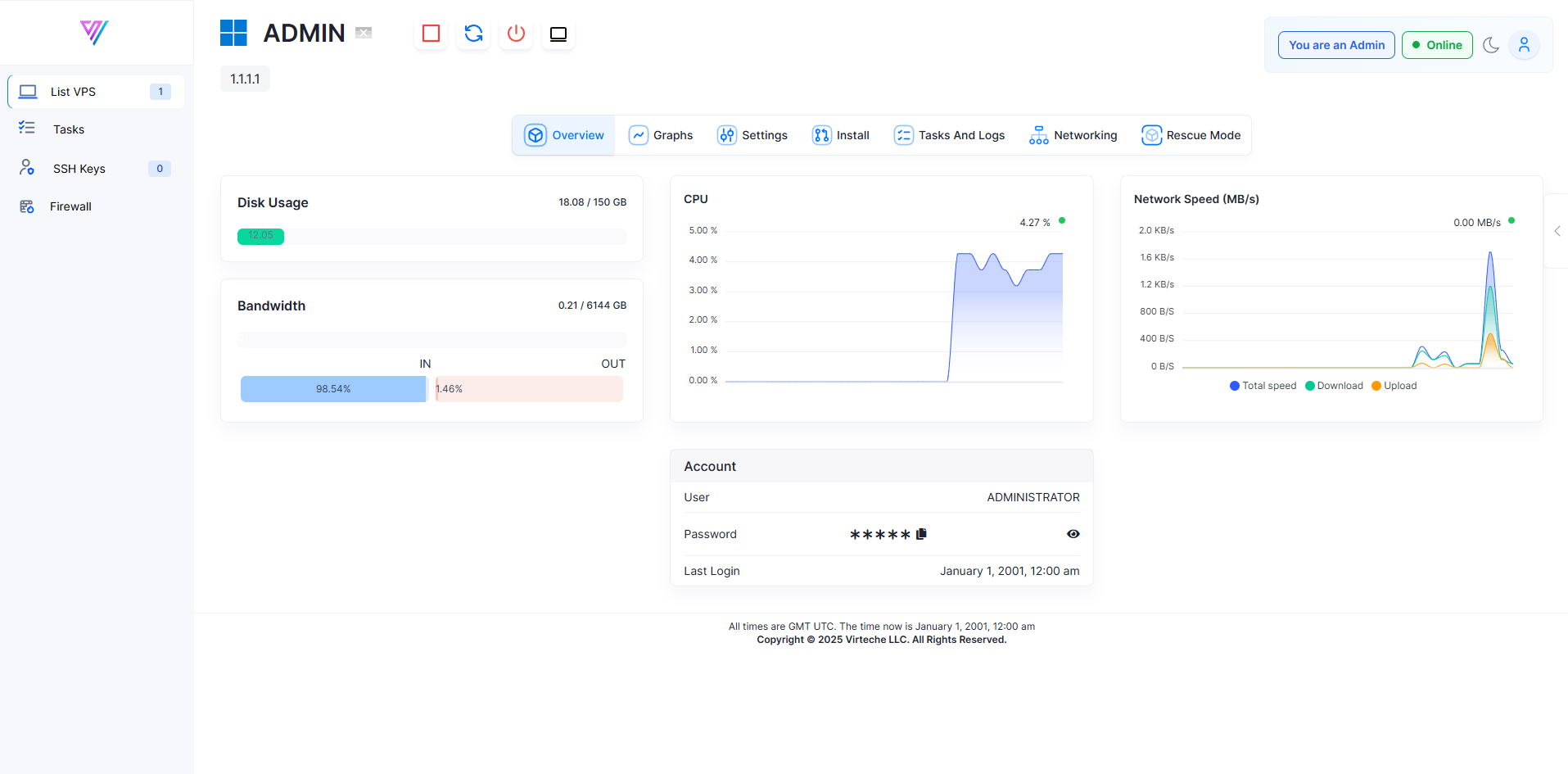 In addition to managing your VPS through your client area on virteche.com, you can also access a full control panel for more advanced management options. This guide will walk you through how to log in and navigate your VPS control panel.