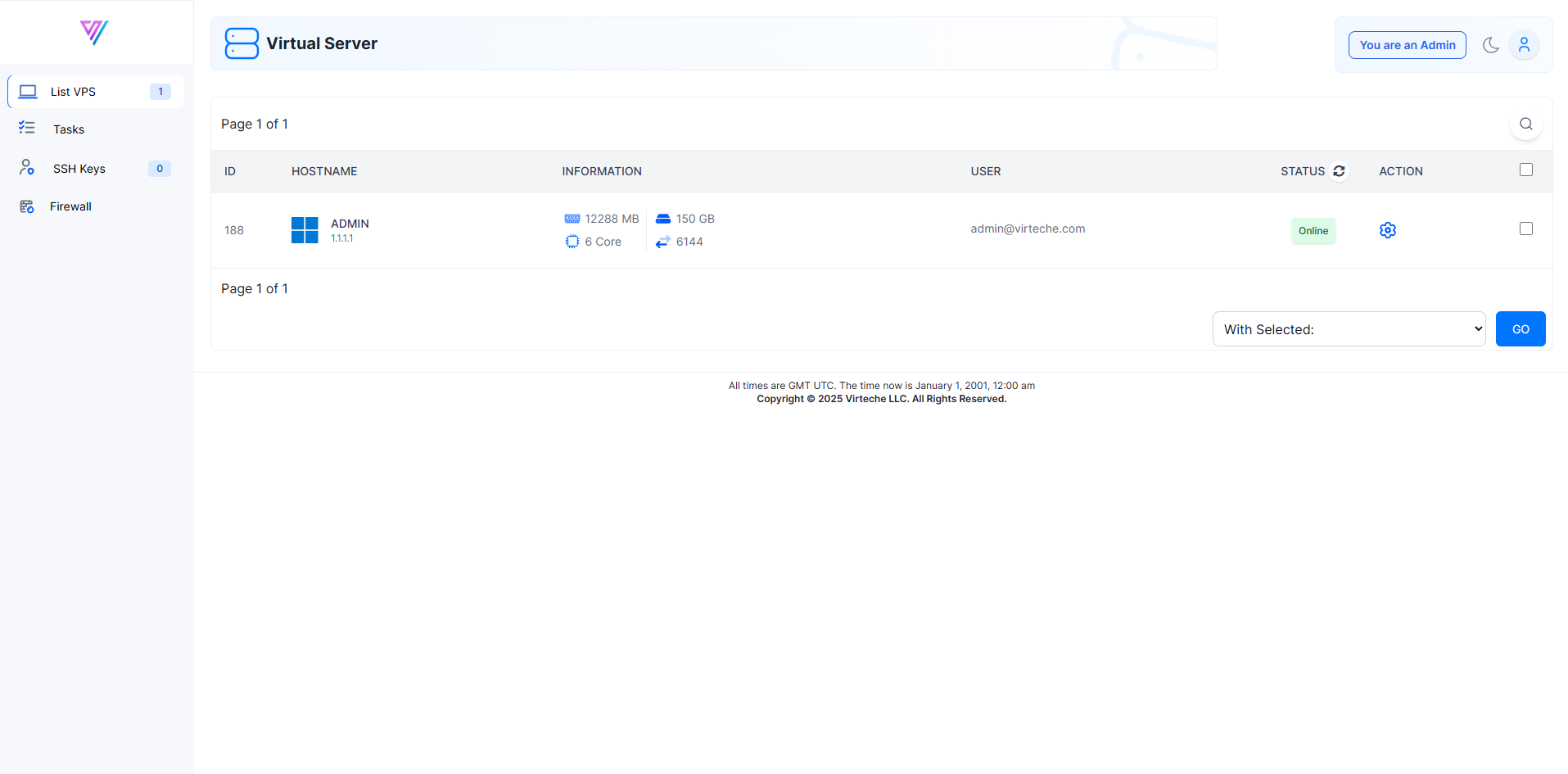 Once logged in, you will see a list of your VPS servers, along with basic information like server status, resources, and management actions.